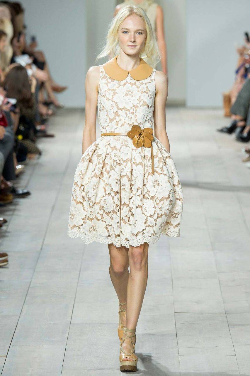 Американский бренд предлагает коллекцию, выполненную в новом стиле. Для сезона весна-лето модельеры предлагают прекрасные коктейльные наряды (платья, костюмы, сарафаны) из кружевного полотна. Акцент в области талии создают с помощью пояса.