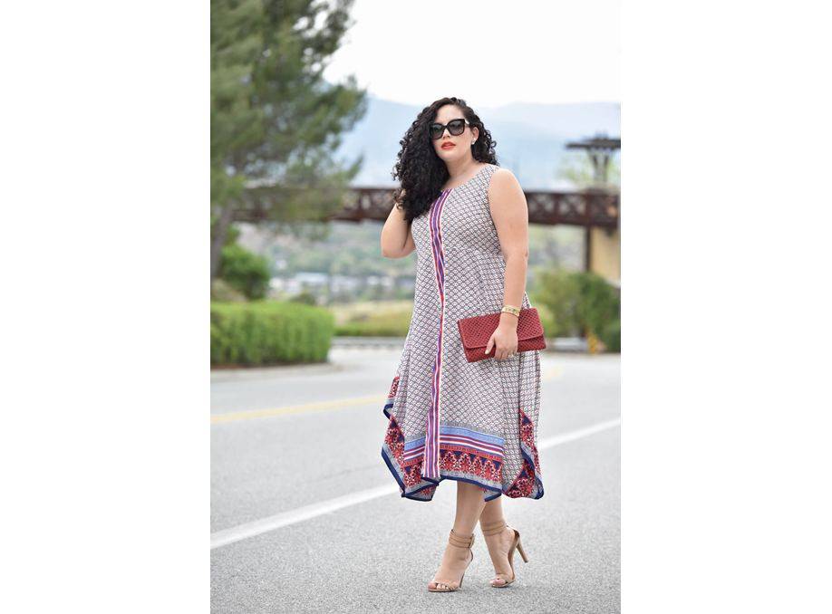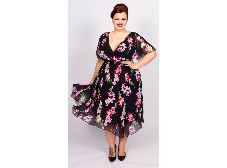 Как и в случае с верхней одеждой, в платьях “пышкам” рекомендуется избегать мини-длины, а также крупных и объемных деталей. Выбор платья будет зависеть прежде всего от особенностей фигуры. Обладательницам массивных плеч и силуэта “яблоко” следует сделать акцент на талии – подойдет крой с запахом и выразительным пояском.