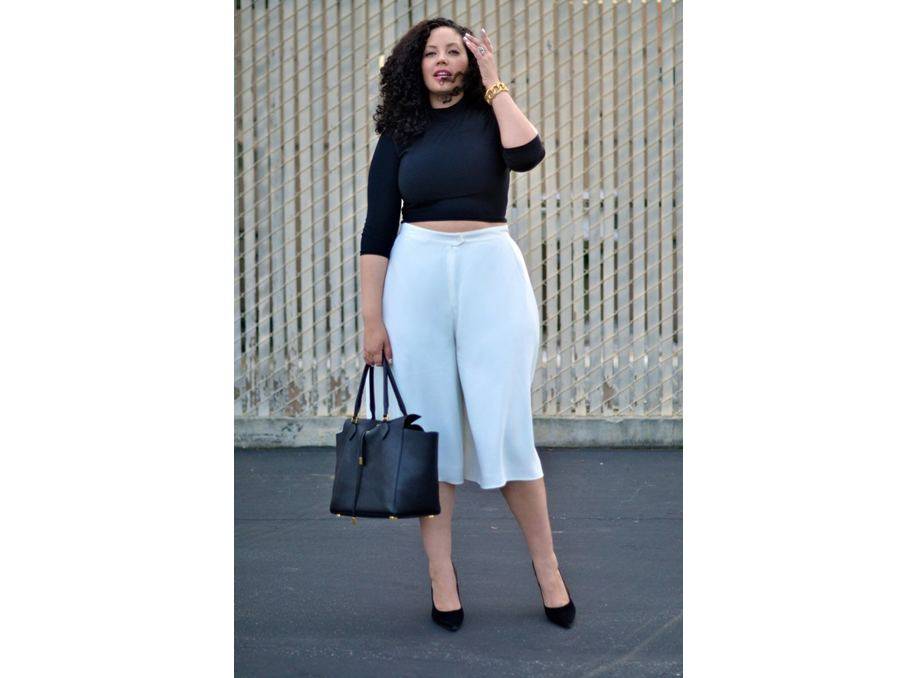 Юбка-брюки. Настоящий must have для пышек всех возрастов, в том числе и тех, кому уже давно за 40 лет. Характерной особенностью данной модели является широкий крой и легкие склады, которые визуально маскируют все недостатки фигуры.