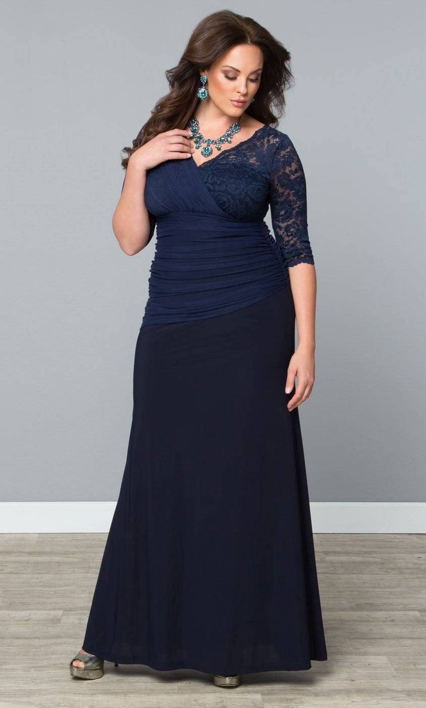 Выбирая вечерний туалет, полным женщинам, чей возраст превысил отметку «50» лучше избегать нарядов, усыпанных пайетками, кристаллами и блестками. Элегантное платье истинной леди должно быть наделено матовой отделкой высокого качества или темными камнями. В качестве ткани изделия лучше всего выбрать материал без блеска.