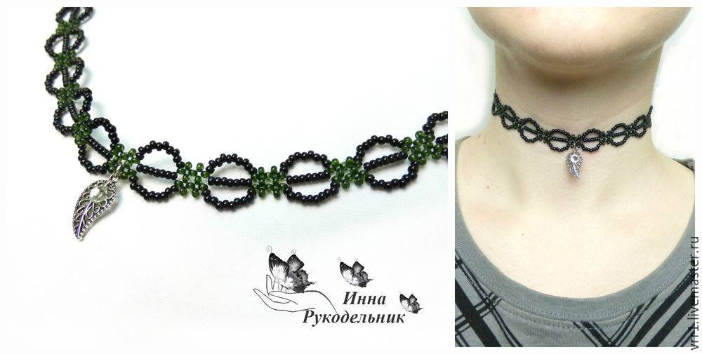 Еще один вариант изготовления бисерного чокера – это вышивка бисером.