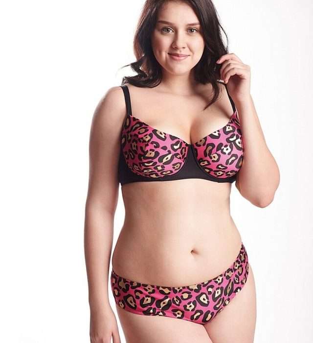 По той причине, что пышки одарены грудью большого размера, фасон бюстгальтера купальника смоделирован с внушительной плотной чашкой, которая закрывает проблемные места в области подмышек и в нижней части изделия.