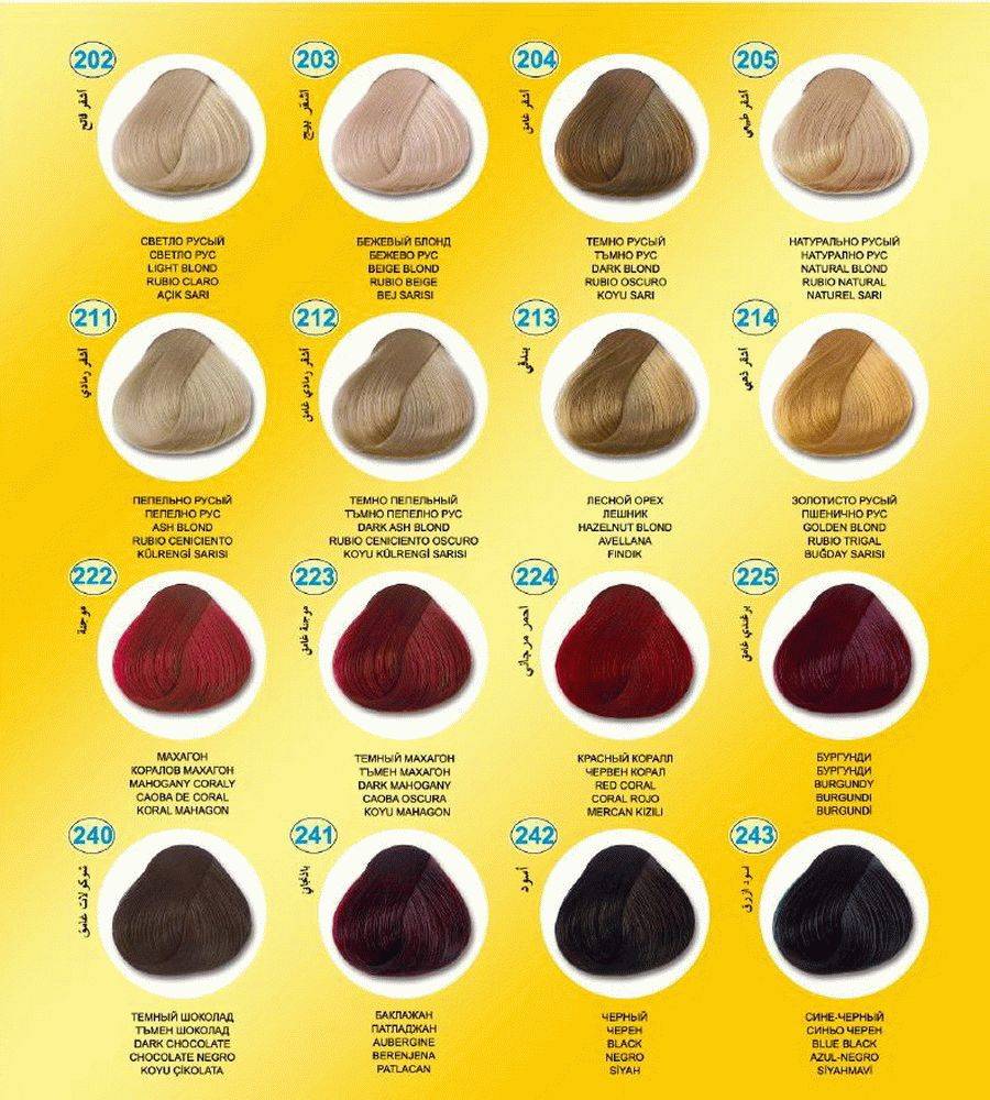 Палитра предлагает 74 насыщенных оттенка, каждый содержит всего 1,7% аммиака – чуть не минимальный показатель среди всех ныне существующих красок. Также есть 5 смешанных тонов с содержанием аммиака не превышающим 1%. Их можно смешивать с краской для создания экстравагантных броских оттенков, но этого компонента не должно быть больше трети в общей массе.