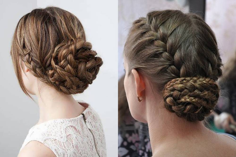 Пучки красиво сочетаются с различными плетениями. Эффектно смотрится как обычная коса, так и колосок.