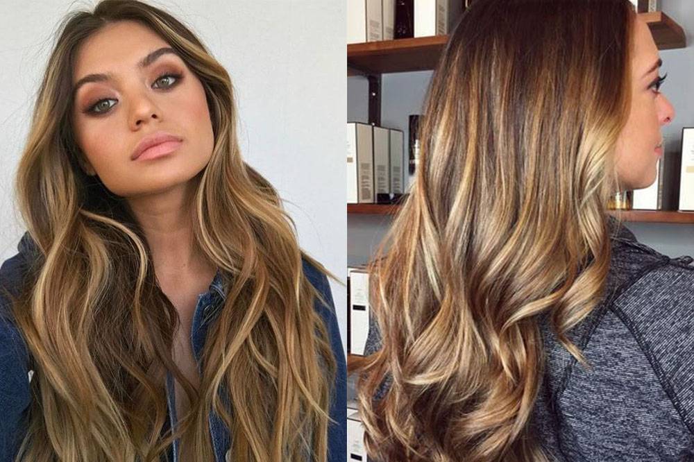 Карамельный балаяж идеально подходит темным шатенкам. Это хороший способ стать немного светлее, не обесцвечивая основную массу волос.
