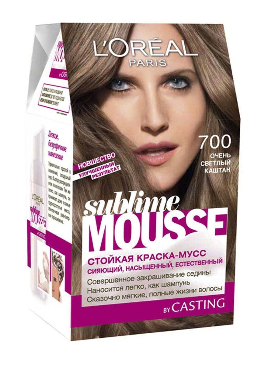 Палитра серии «Сублим Мусс» компании L’Oreal Paris предлагает дамам два варианта нужного оттенка, которые называются «Чистый светлый каштан» (номер 600) и «Очень светлый каштан» (номер 700) (на фото ниже).