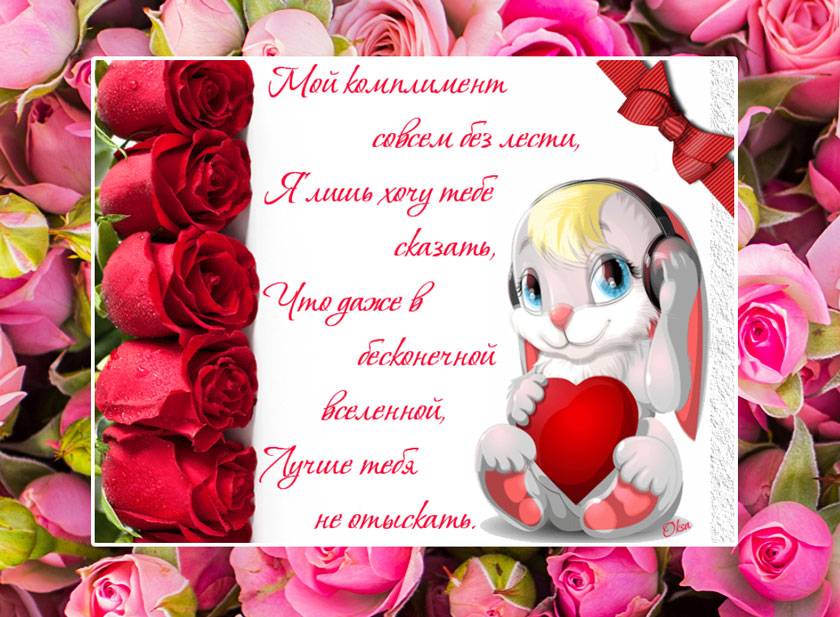Добрые и теплые слова поднимают самооценку и веру в себя. Также, чтобы девушка чувствовала и знала, что любима. Настроение улучшится не только у дамы сердца, но и у вас.