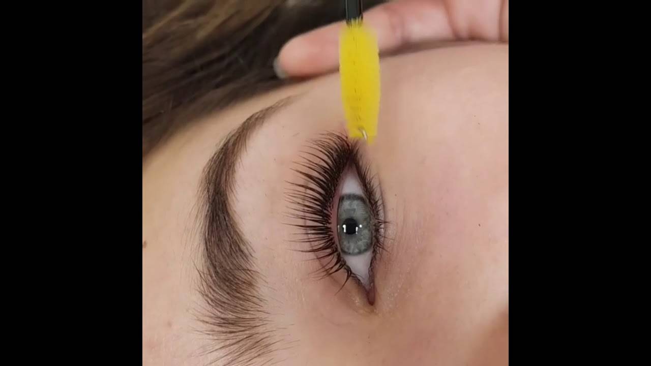 - Финишный этап. Все накладки и бигуди снимают, ресницы расчесывают щеточкой.