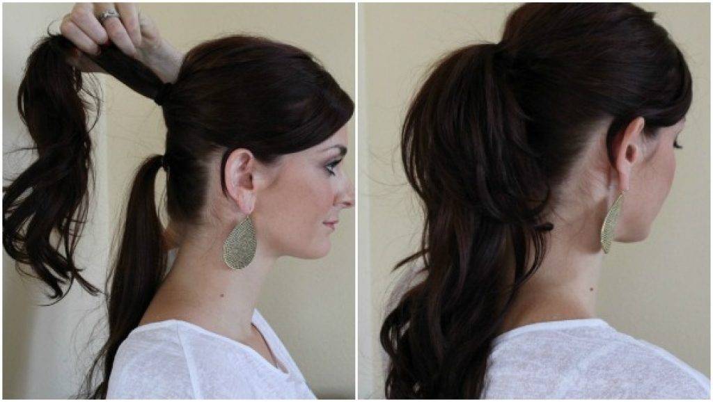 Совет. Чтобы образ был утонченным и привлекательным, верхнюю часть волос перед формированием хвоста нужно начесать.