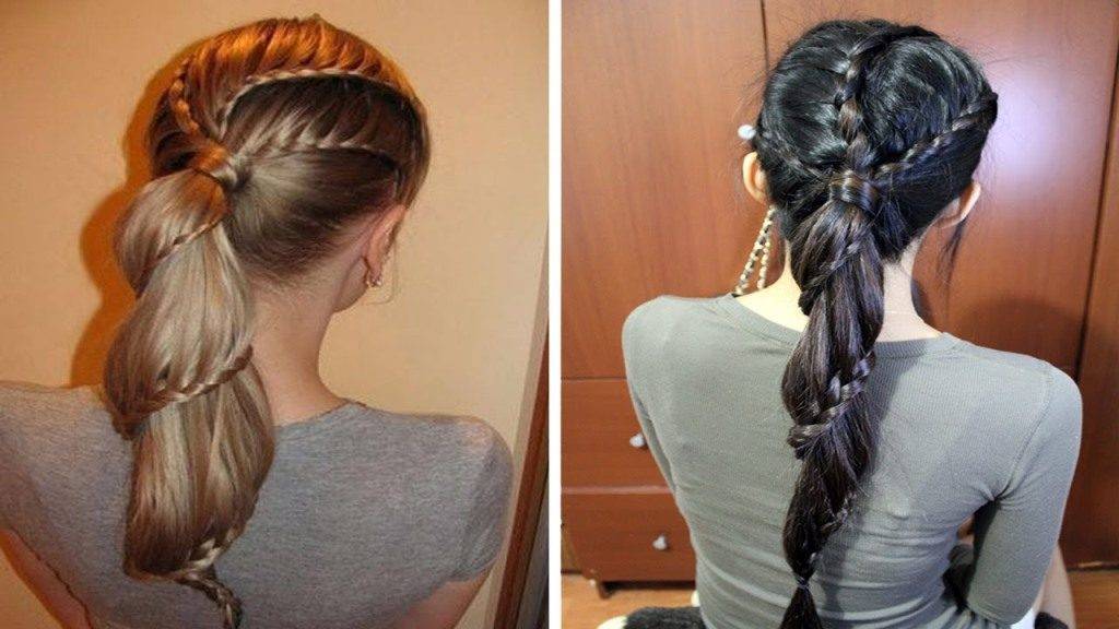 Если есть желание разнообразий образ с хвостом, то можно добавить в прическу косы. Такие причёски своими руками можно соорудить буквально за пятнадцать минут. Дополнить образ можно аксессуарами.