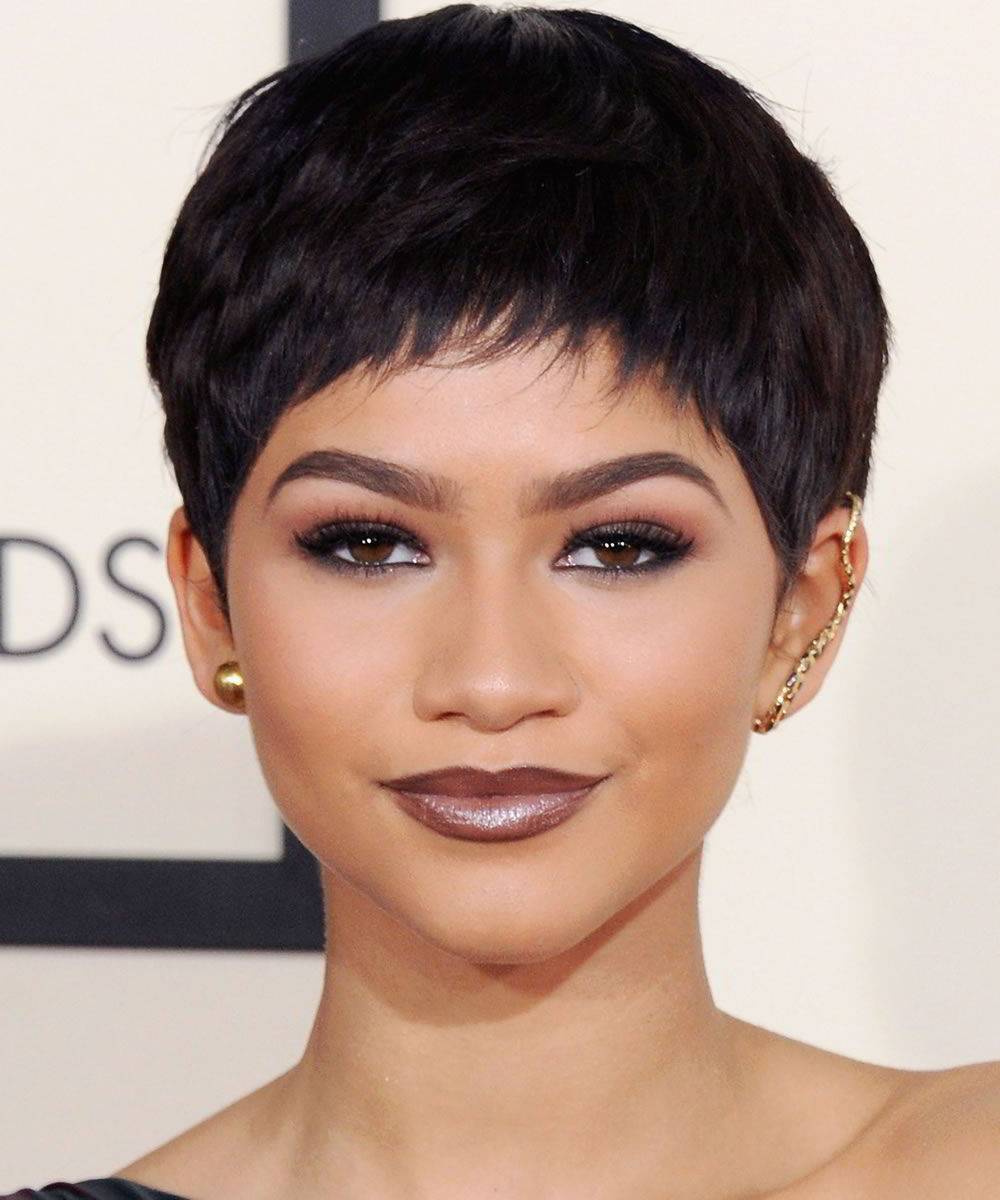 Для создания более женственного образа подойдёт причёска пикси или многослойная стрижка. Они хорошо подчёркивают скулы и форму лица, в отличие от описанных выше вариантов, остаются изящными, не слишком агрессивными.