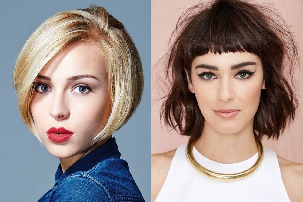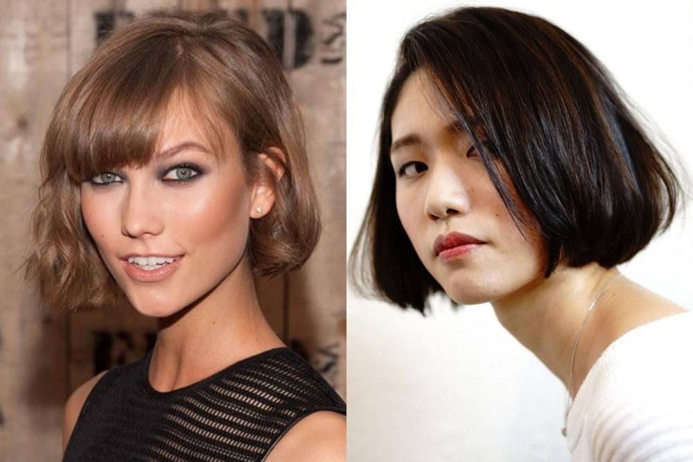 Обладательницам удлинённых лиц с острым подбородком хорошо помогут сгладить углы округлые вариации стрижки, такие как «Боб-каре», «Каре на ножке» и все остальные вариации, но дополненные густой прямой чёлкой.