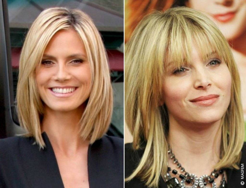 При таком типе лица щеки — самая широкая часть. Подойдут: короткая стрижка, прямые волосы, закрывающие часть шеи и доходящие до углов нижней челюсти. Длинные, до плеч, гладкие волосы или несколько завитые на концах, закрывающие часть щеки, с боковым пробором создают эффект удлиненного лица. Не годятся кудряшки и колечки, волосы, зачесанные назад, — с ними лицо будет казаться еще круглее.