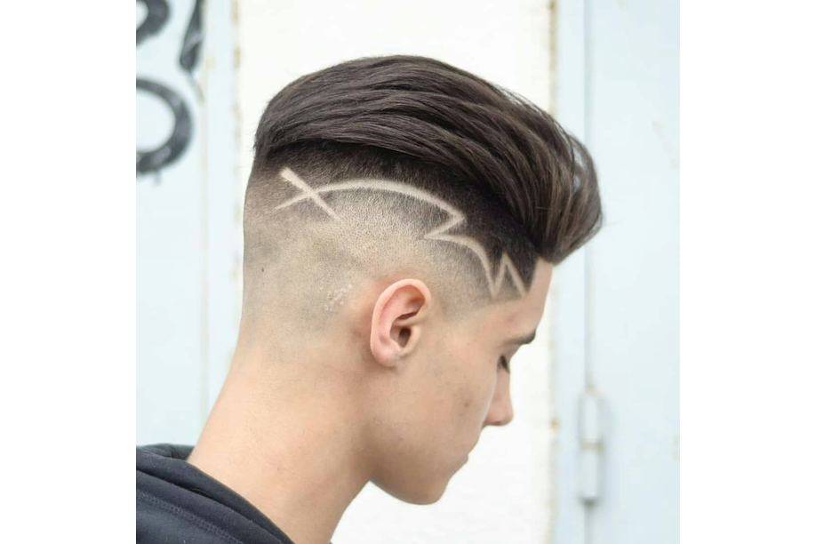 Дополнить причёску можно выбритым пробором или рисунком на затылочной или височной части головы по желанию подростка.