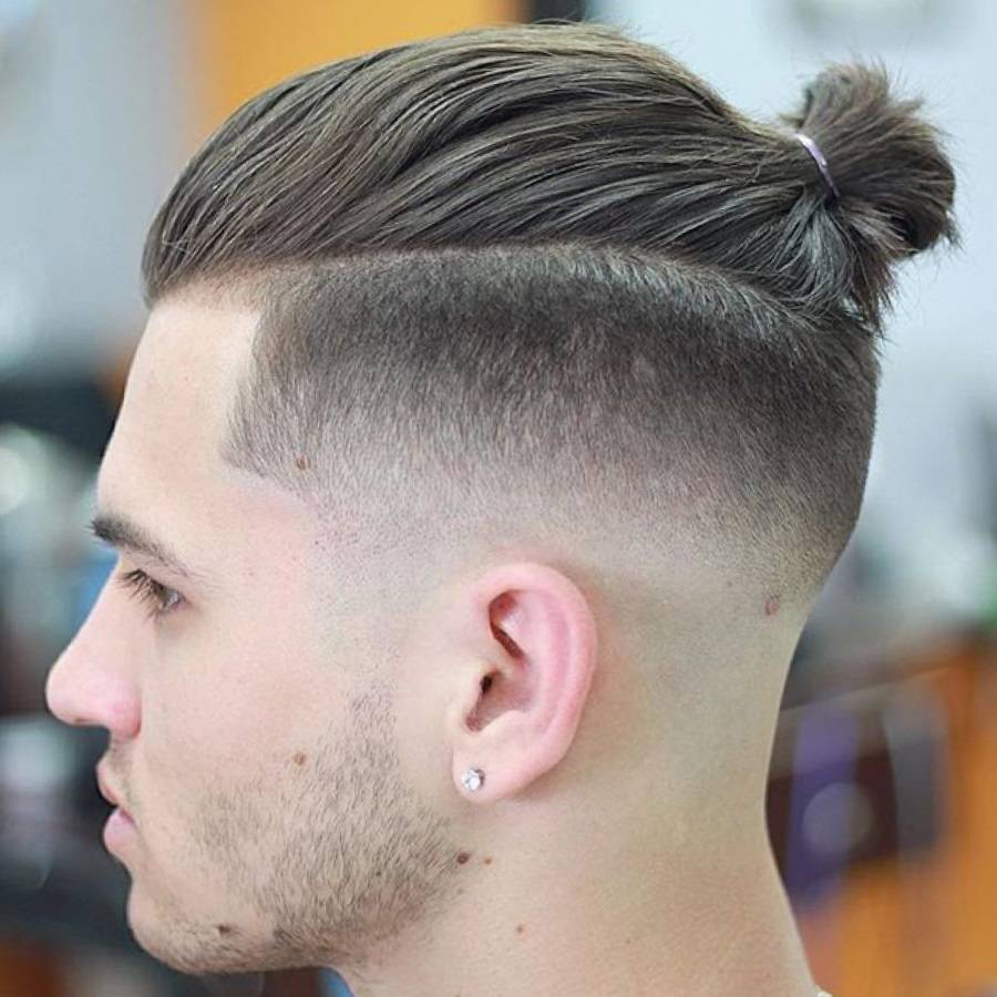 Эта мужская прическа с хвостом и выбритыми боками и затылком пользуется популярностью у тех молодых людей, которые не хотят расставаться с длиной волос, но хотят привнести что то новое и креативное в свой образ. Удобство укладки и эффектный вид — это главные достоинства стрижки Top Knot. При желании хвост может трансформироваться в пучок.