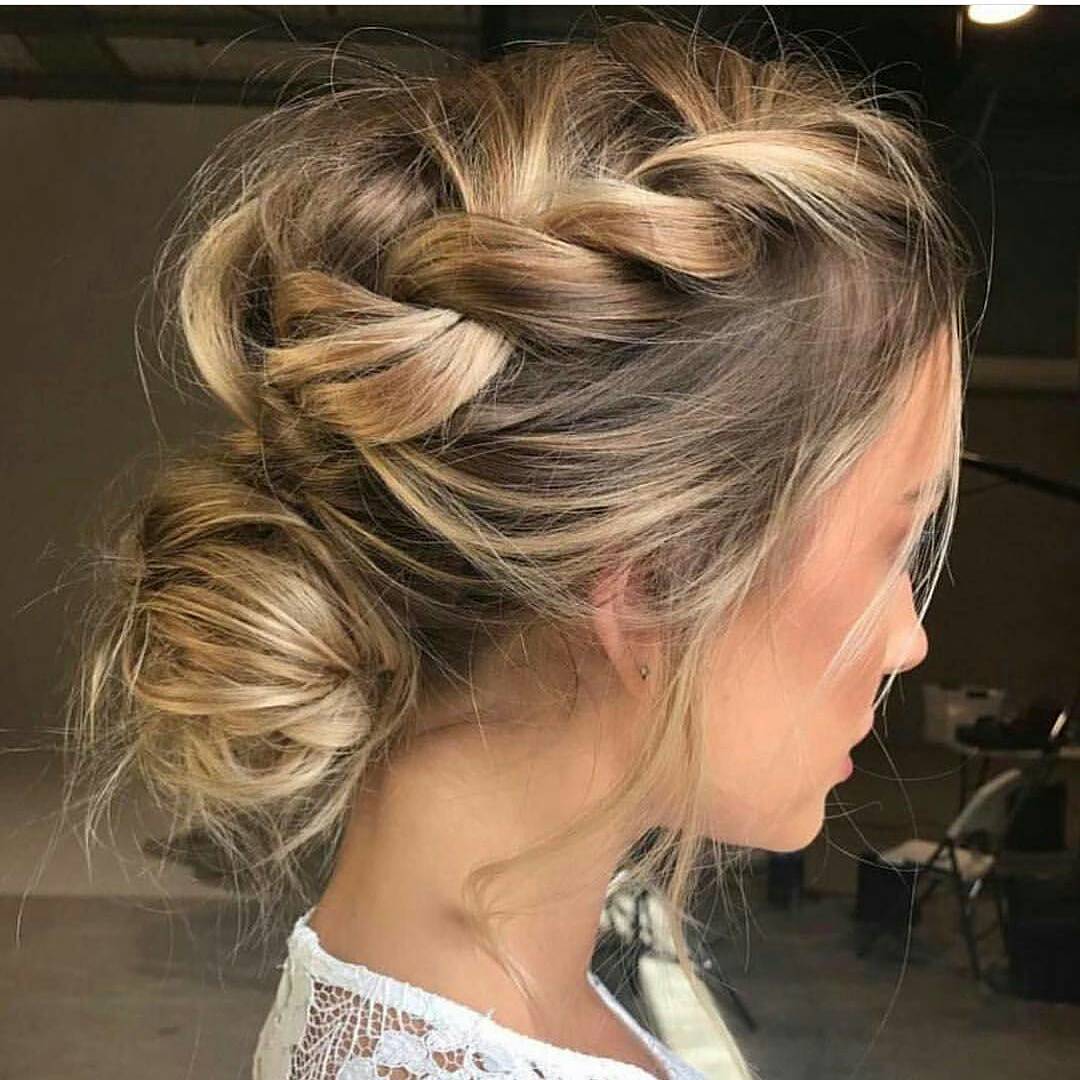 - оставшиеся волосы нужно заплести в косу и обернуть вокруг пучка, зафиксировав их шпильками;