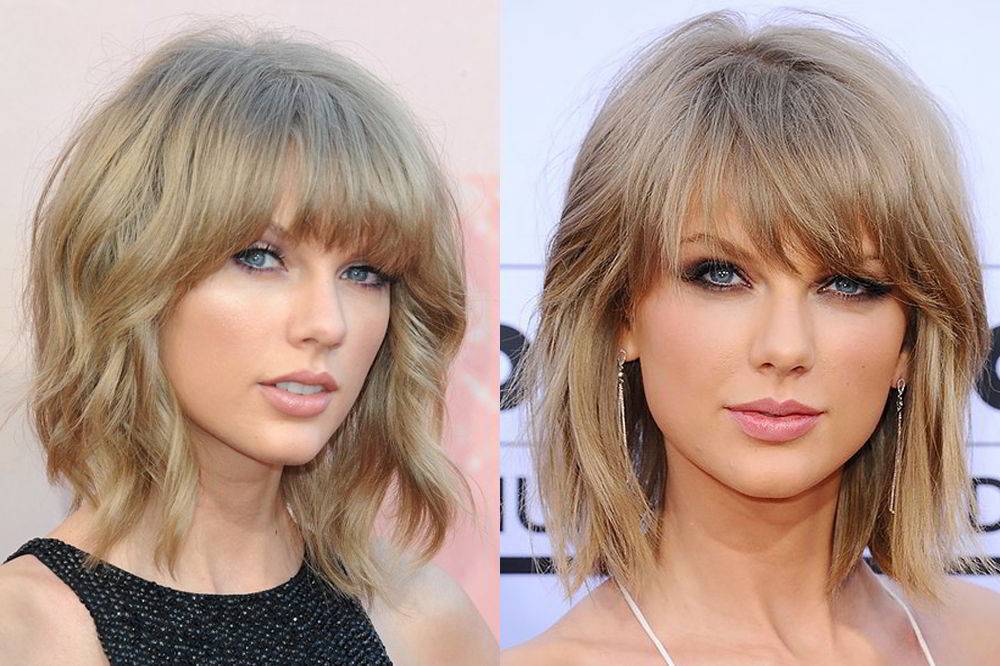 Посмотрите на примерах, что длинные боковые стреловидные челки удлиняют круглые лица, лучше других.