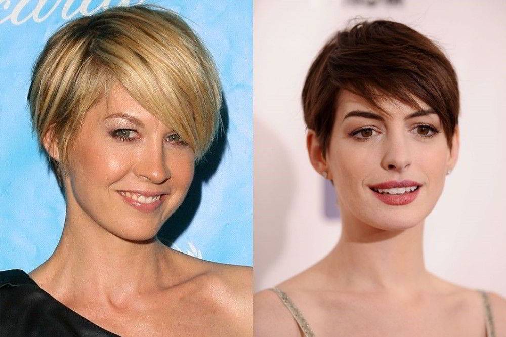 Чтобы удачно подобрать стрижку, необходимо обязательно учесть свой лип лица, но для лиц овальной формы, великолепно подходят стрижки различной длины, а также техники исполнения — асимметричные или симметричные, рваные или каскадные. Кроме того, замечательно будут смотреться стрижки, как с чёлкой, так и без. К данной форме лица чудесно подойдут низкая или высокая прическа с пробором. Единственное, что нужно учесть, так это то, что локоны, собранные в пучок способны добавить пару-тройку лет женщинам солидного возраста.