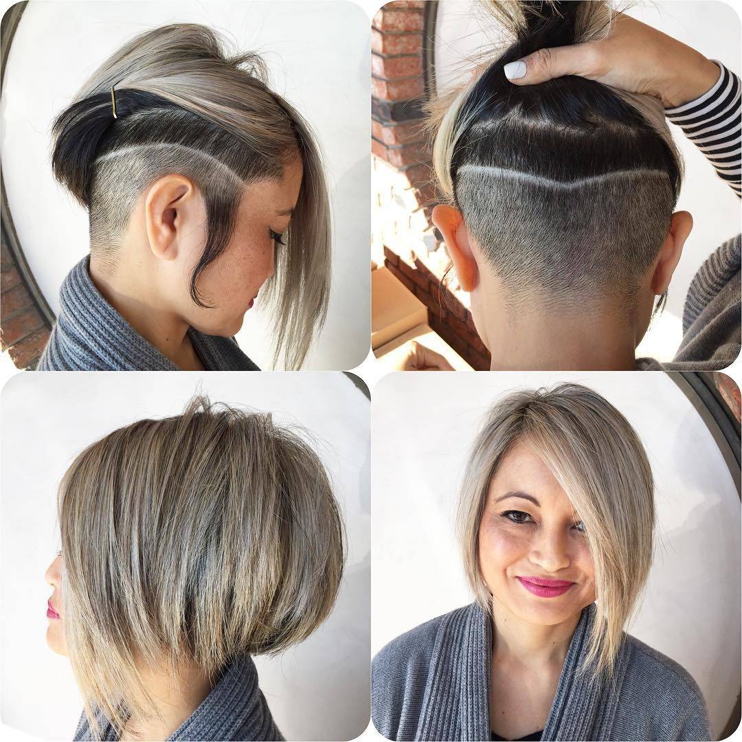 В тренде также решения с выбритыми или коротко подстриженными волосами в затылочной и/или височной части головы. Для любительниц ретро-стрижек, боб-каре с выбритым затылком можно без особого труда трансформировать в модную прическу 60-х годов прошлого столетия. Для этого нужно пряди у корней сделать максимально объемными, а сверху – гладкими и ровными. И модное дополнение к необычному и яркому образу готово!