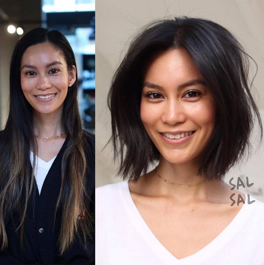 Боб — идеальное решение для тонких волос, лишенных объема. Именно поэтому к этой стрижке прибегает все больше женщин после 40. Кроме этого, красивая укладка боба способна омолодить ваше лицо, как минимум на 5 лет. Те, кому стандартного объема от стрижки кажется мало, могут попробовать добавить его с помощью приподнятия стайлинговыми средствами затылка и макушки.