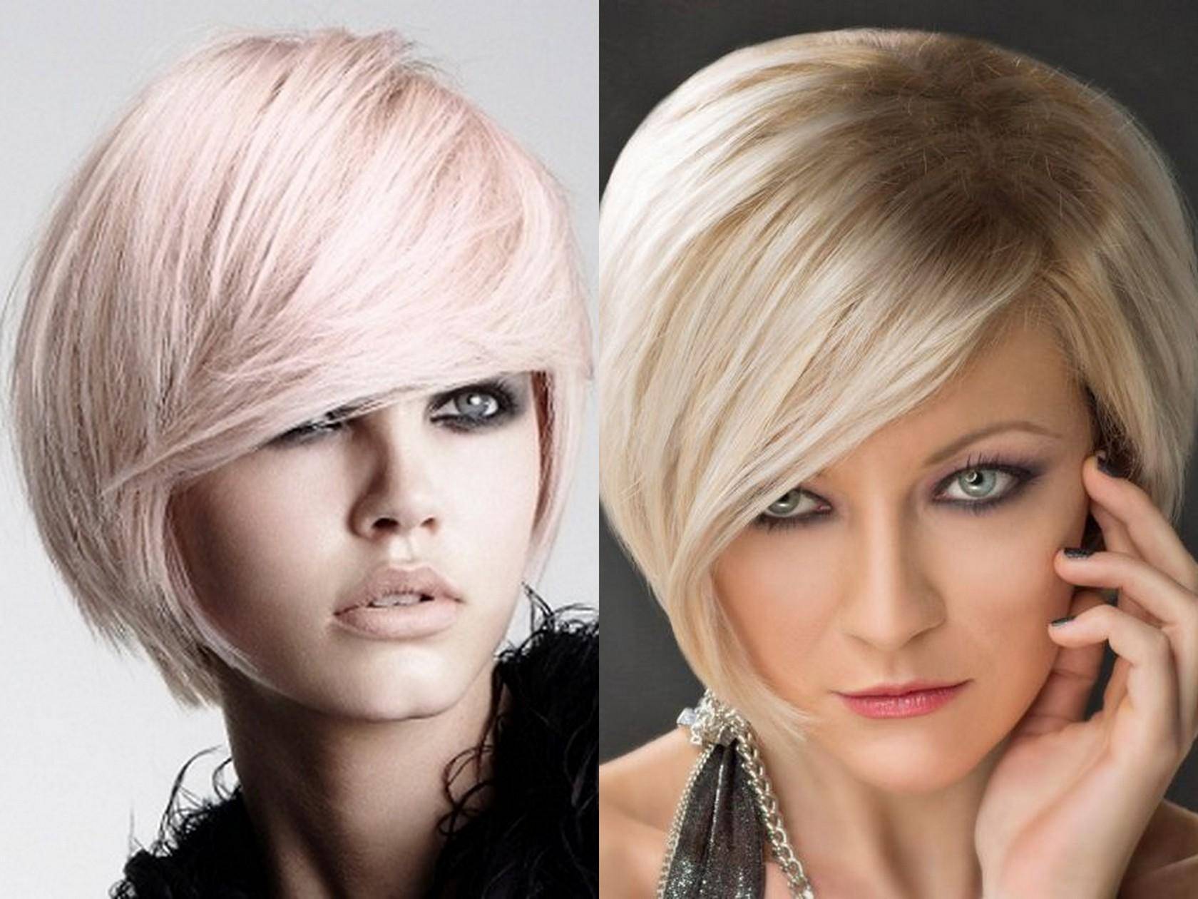 Асимметрия. Модницы, которые предпочитают составлять неординарные луки, по достоинству оценят короткую асимметричную стрижку. С одной стороны она может быть максимально укороченной и даже содержать выбритый висок с расположенными на нем оригинальными узорами. С другой стороны прическа может выглядеть как укороченное каре.