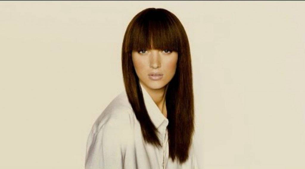 Ровная челка с четким краем позволяет девушке сделать акцент на глаза, поэтому такой вариант прически является очень популярным и востребованным уже довольно долгое время. Если волосы ровные и послушные, можно, чтобы челка начиналась практически на макушке, тогда длина волос при этом будет значительной.