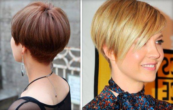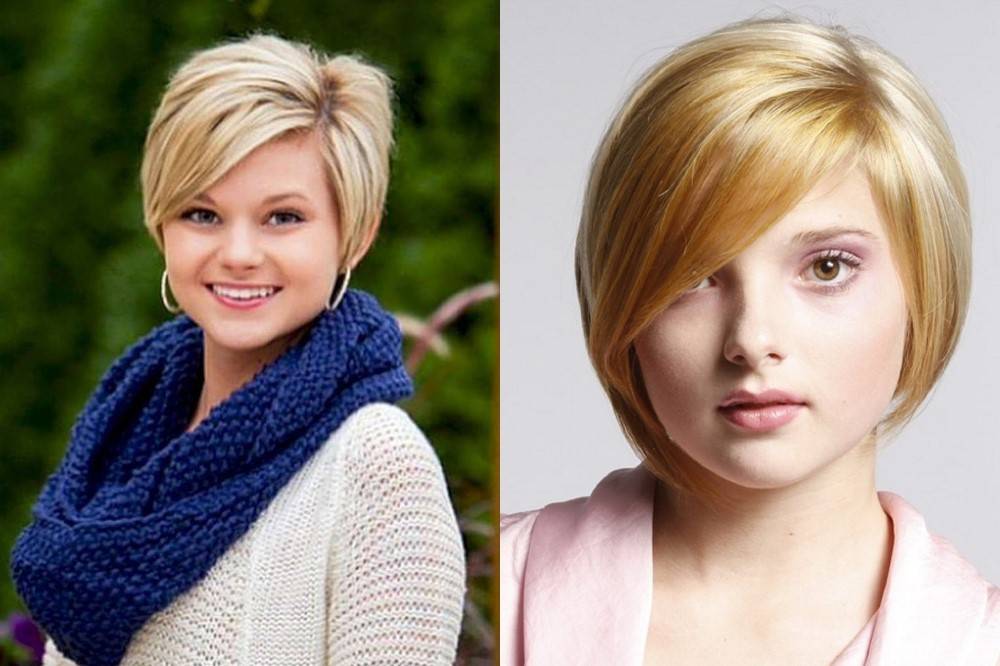 Круглолицым девушкам лучше выбирать следующие вариации данного вида стрижки: ассиметричный или А-образный боб. Указанные виды причесок подразумевают наличие многослойной текстуры волос, асимметрию и неравномерность в выстригании. Основной важный момент: верхушка головы делается объемной, длина локонов на затылке – очень короткая или средняя, а вот волосы у лица должны быть достаточно длинными, доходить до подбородка или опускаться ниже.