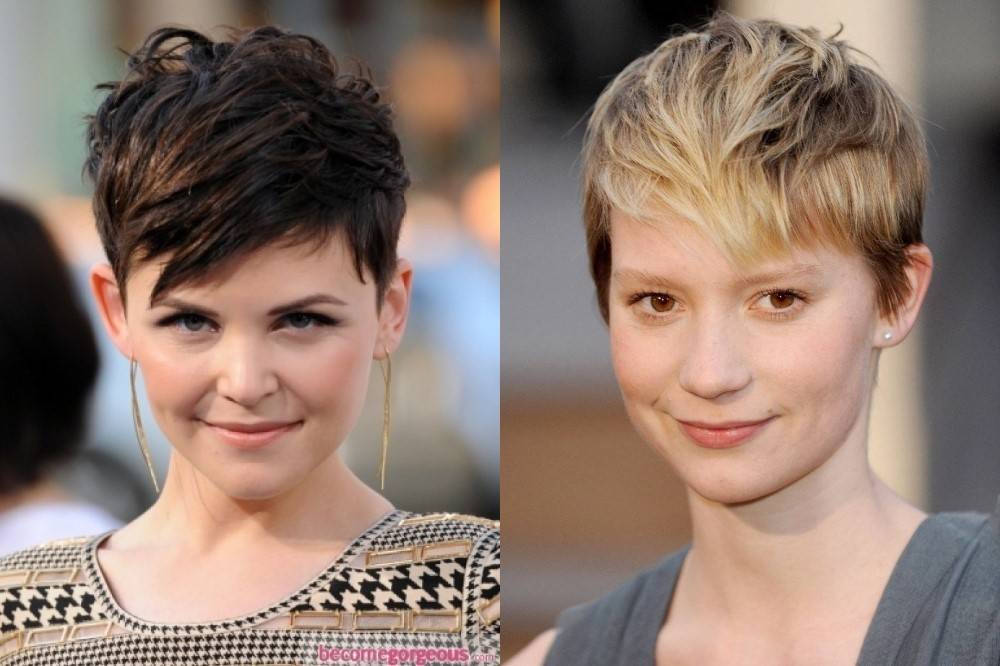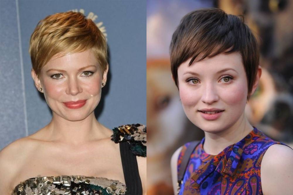 Пикси относится к разряду очень коротких стрижек. Поэтому, выбирая её для круглого лица, следует сделать акцент на двух моментах: объемной макушке и отсутствии пышности по бокам. Визуально поделите линию лба на две части по горизонтали, ширина половинки – это тот объем, которого в идеале необходимо добиться сверху, стремясь к эталонным пропорциям. На висках и в районе щек следует максимально убрать пряди. Стрижка также не должна быть гладкой и ровной: рваные локоны, асимметричность и некоторая небрежность лишь приветствуются.