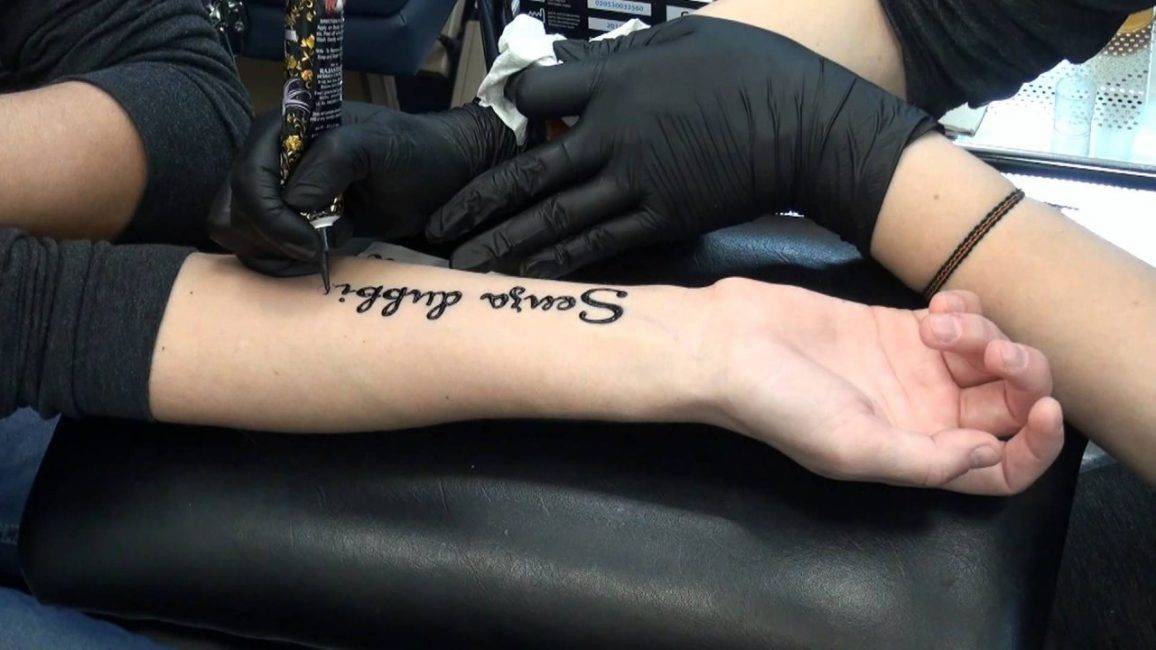 Процесс создания тату в виде текста подразумевает ввод под верхние слои кожу специальных красящих веществ. Это не вызывает аллергических реакций. Чтобы не спровоцировать заражение или развитие осложнений, мастер должен обязательно соблюдать все санитарно-гигиенические правила.