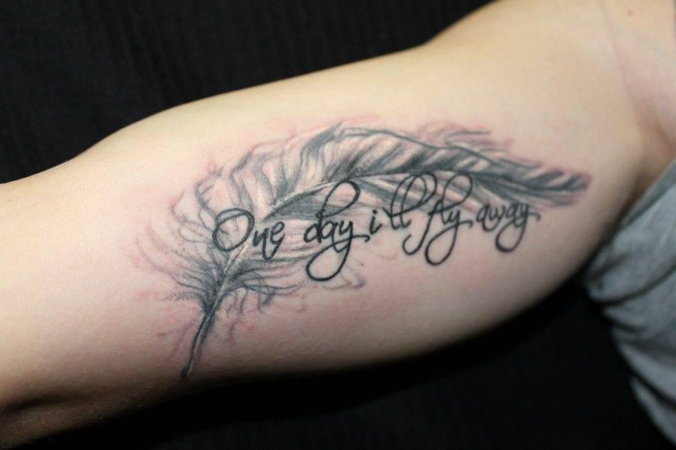 Авторы рисунков создают шрифт с учетом места расположения тату, его направления и количества букв и слов. Подбирая цитаты выражения фразы для тату со смыслом для девушек учитывается размер руки, тип кожи.