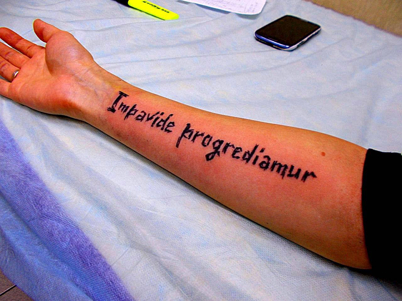 - Длина надписи и желаемый размер шрифта. Разумеется, что на пальцах поместится маленькая фраза, а на предплечье можно разместить целое предложение.