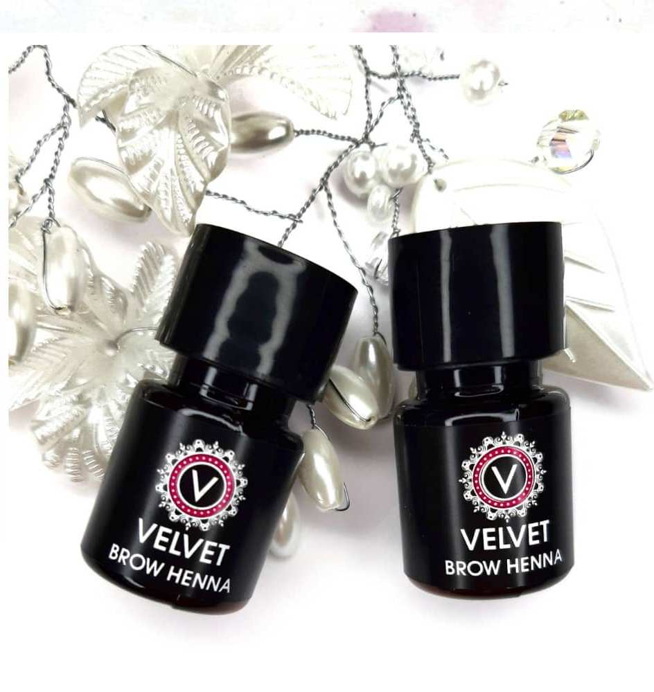 Velvet Brow Henna. Этот набор выпускается как дополнение к любому из вышеперечисленных, поскольку его функция не проведение процедуры вельвет ресниц, а окраска ресниц/бровей в ходе данной процедуры. Состав данного набора включает в себя: 5 цветов хны для бровей – черный, темно-коричневый, насыщенный коричневый, светло-коричневый и песочный, каждого цвета хватает на 40 процедур окрашивания. Хна для ресниц глубокого черного цвета, в объеме, достаточном для проведения 50 процедур окрашивания. Также в набор входят активатор цвета, очищающая основа, биосепт, фиксатор цвета, кисточка для нанесения красящего состава, мерный ложка и стакан, пипетка.