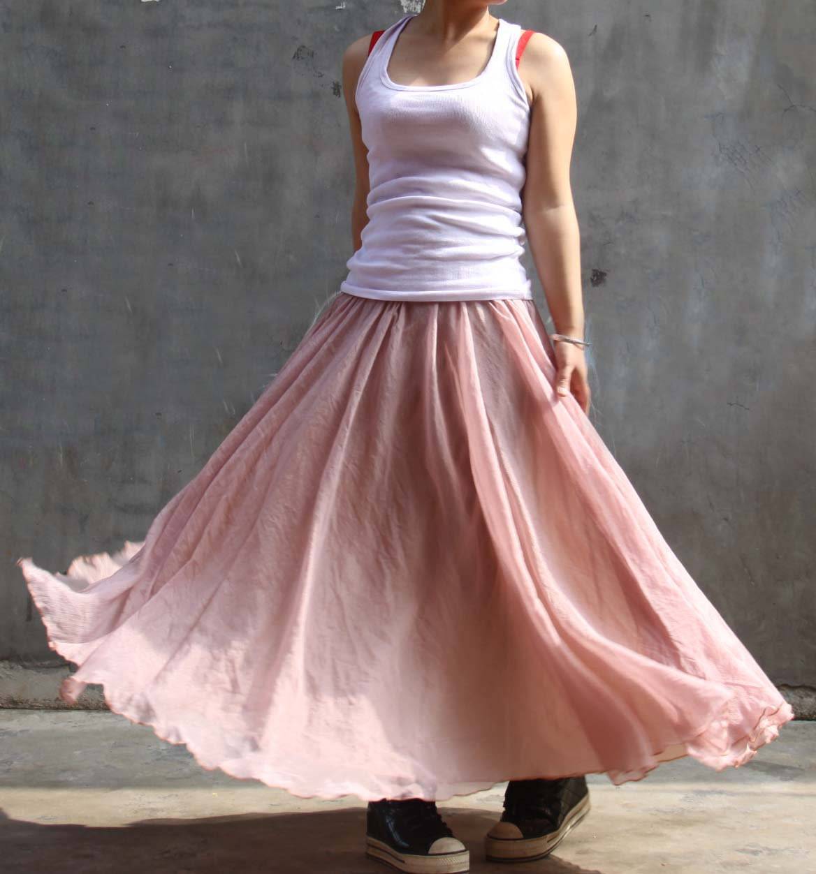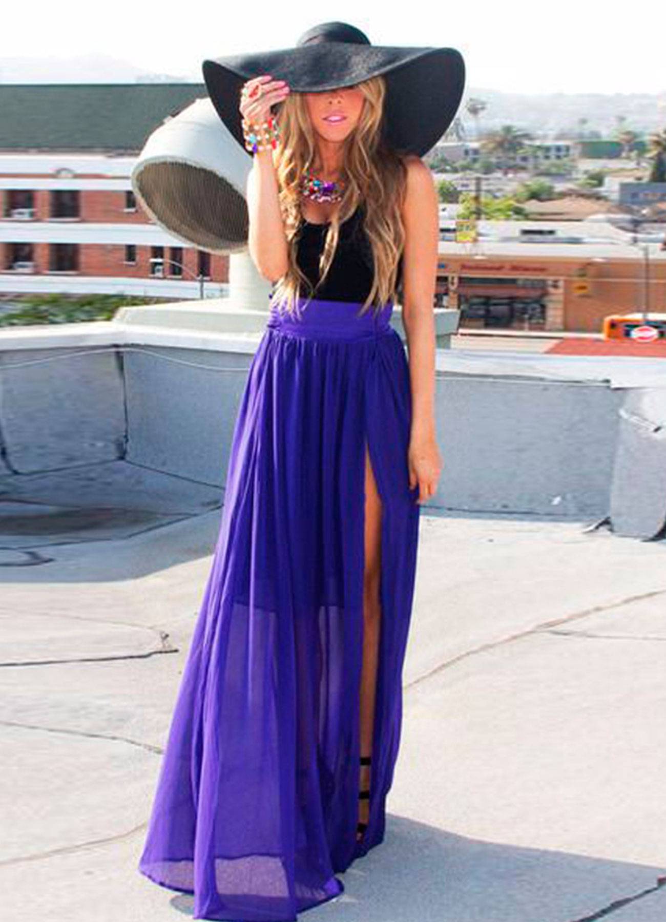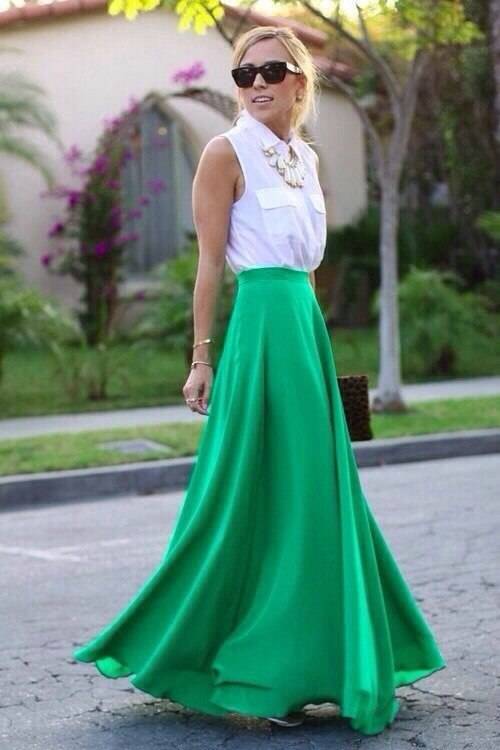 В отличие от шифоновых платьев, юбка-макси выглядит очень хорошо как на полненьких, так и на худеньких девушках.