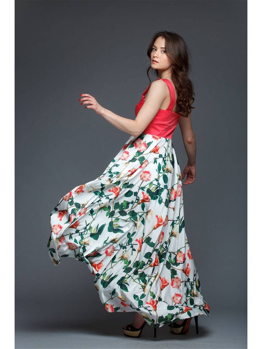 Красивые юбки такого кроя с цветочным орнаментом смотрятся очень эффектно. Они сочетаются с высокими каблуками и могут иметь различную длину.