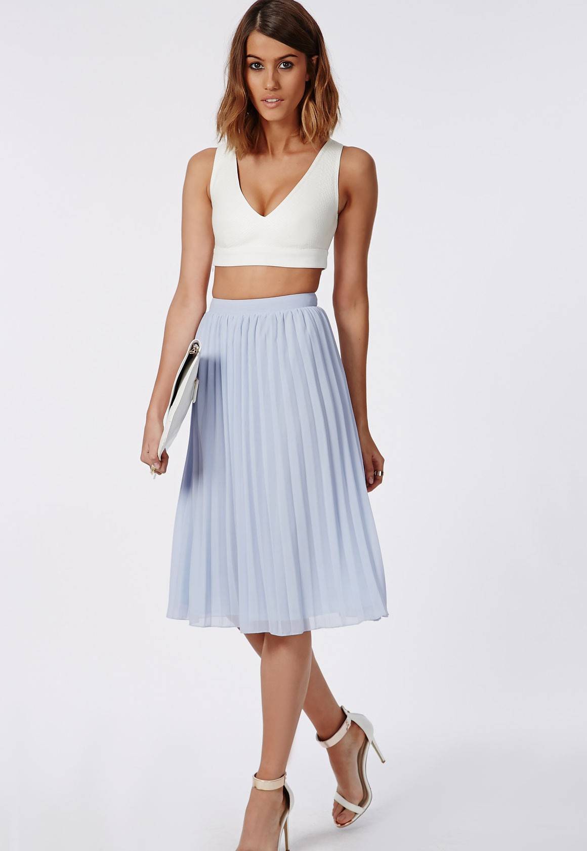 Шифоновая юбка длины миди – прекрасный вариант для тех, кто колеблется в выборе от коротеньких до длинных моделей из шифона.