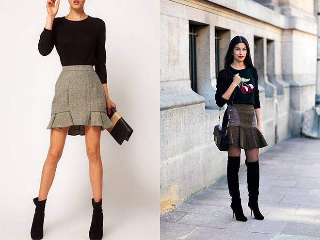 Если говорить о юбках средней длины, то с сапогами они будут смотреться неплохо. Конечно, многое зависит от кроя. Но если женщина решит осенью надеть подобную вещь, то это не вызовет вопросов.