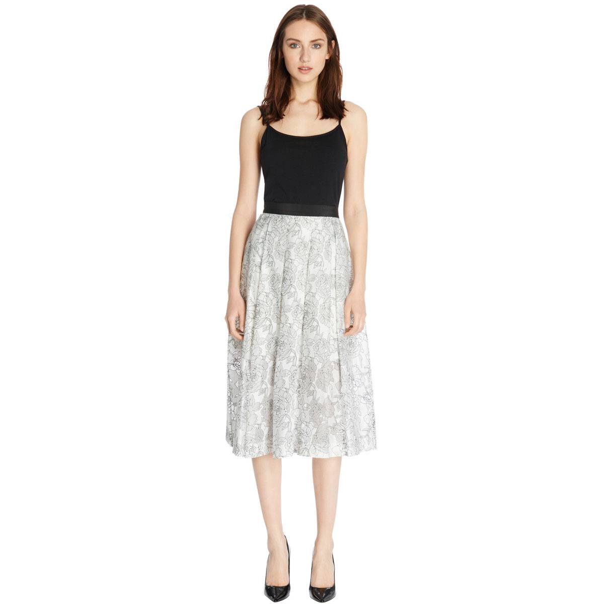 Классический фасон миди юбки годе позволяет сочетать его практически со всеми вещами и вписать в индивидуальный стиль.