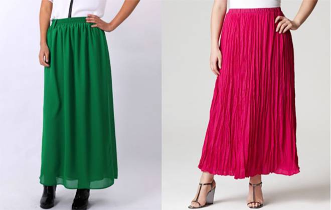 Основное правило при покупке: правильно подобрать цвет и фасон. На самом деле, популярных вариантов множество. Длинная юбка из шифона фасона «солнце» или летящие юбки-плиссе скроют лишний вес и небольшие недостатки женщин в теле.