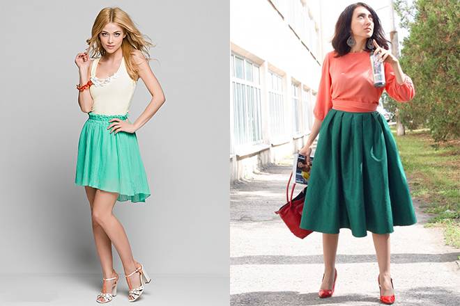 И наоборот: цветная юбка не терпит яркого верха. Созданный лук будет выглядеть слишком ляписто.