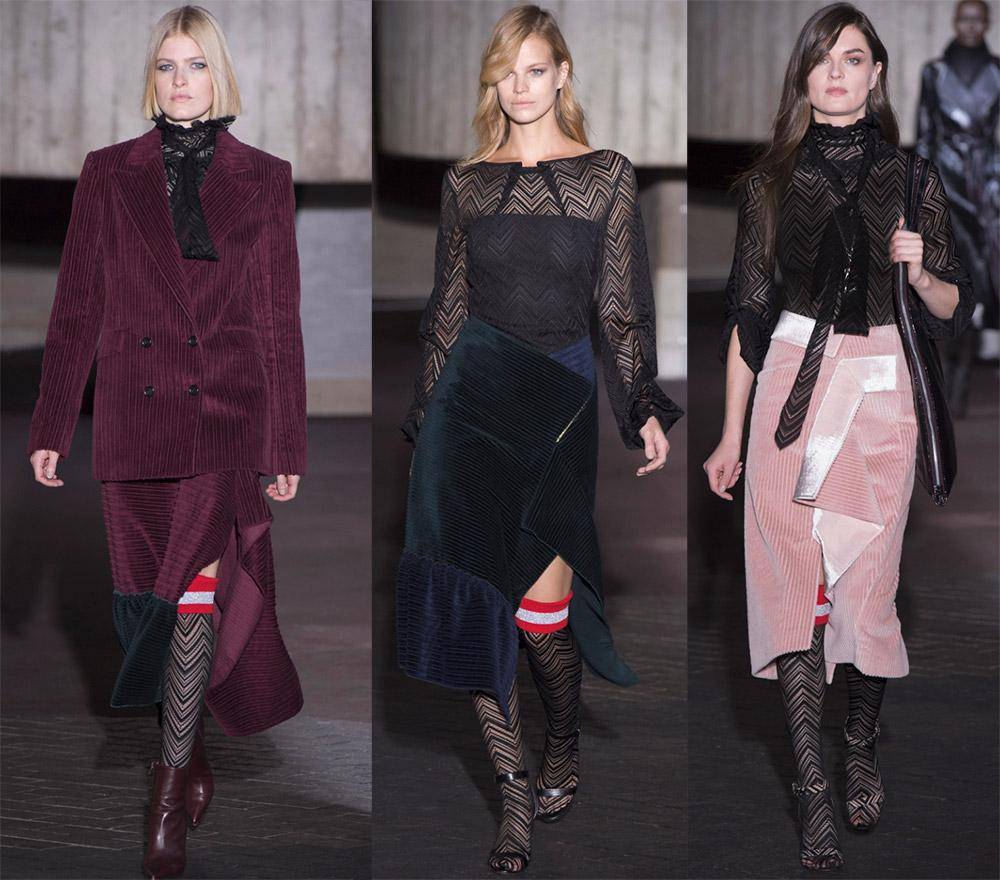 Модельеры делают упор на использование гофрированного шифона и теплых шерстяных тканей. Также, если раньше были популярны модели на поясе, то теперь все шире используется крой – солнце на резинке, отлично подходит для полных девушек. Этот фасон сохраняет популярность уже несколько сезонов, и останется на пике моды и в следующем, судя по модным фото с показов коллекций.