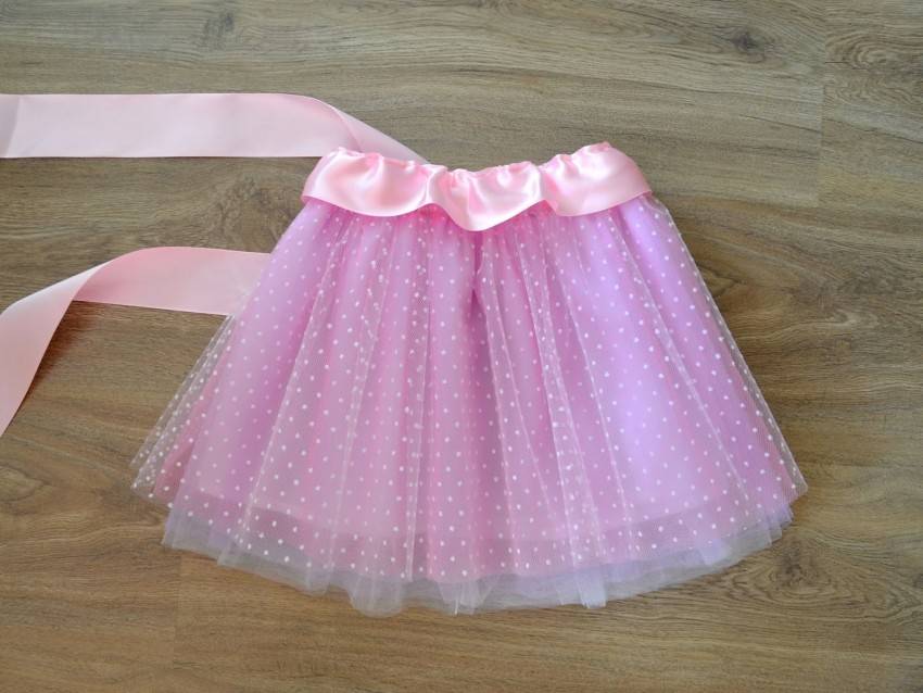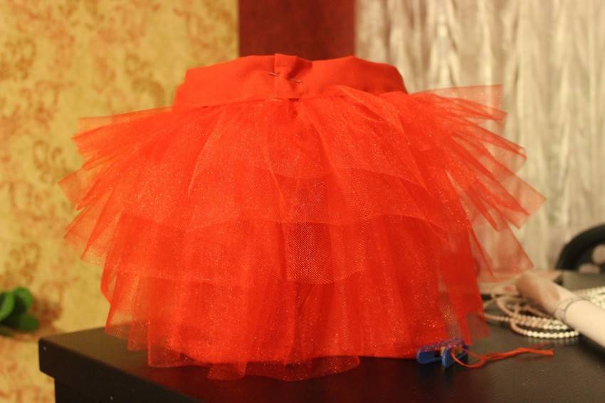 - В среднем для такой юбки достаточно 2–3 слоев. Ориентироваться нужно на желаемую пышность и плотность стянутого фатина.