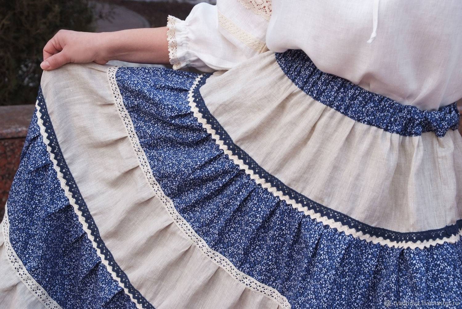Юбки, скроенные по косой с поясом на резинке, очень просты в изготовлении и удобны в носке