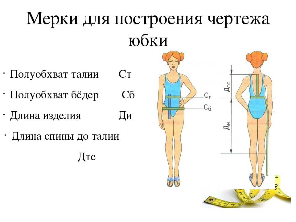 Перед тем как правильно начертить выкройку юбки полусолнце, по-другому клеш, нужно снять необходимые мерки: