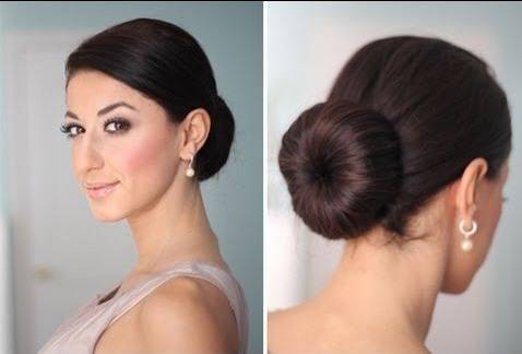 Очень элегантный и стильный пучок, для сооружения которого понадобится мягкий «бублик» (объемный тор), который можно купить или соорудить самостоятельно из носка (желательно подобрать цвет в тон волосам):