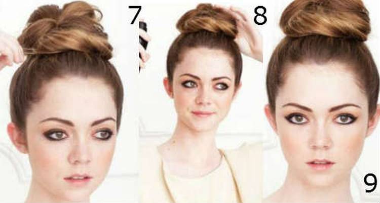 7-8-9. Закрепите кончик шпильками и зафиксируйте пучок лаком.