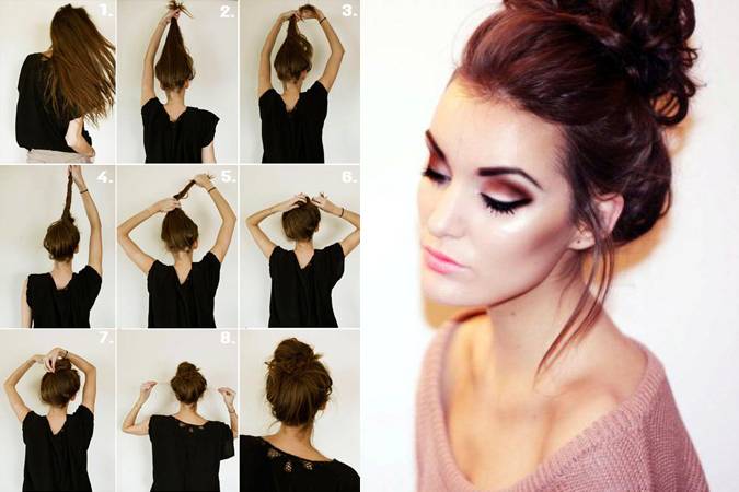 Полезные видео-уроки по созданию небрежных пучков для разной длины волос