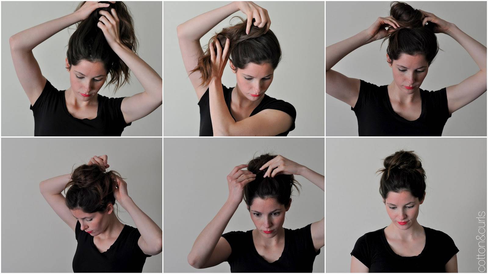 Вот и конечный результат! Если вы хотите, чтобы пучок получился более пышным, можно начесать хвост (каждую прядку отдельно) и только затем приступить к шагу №3.