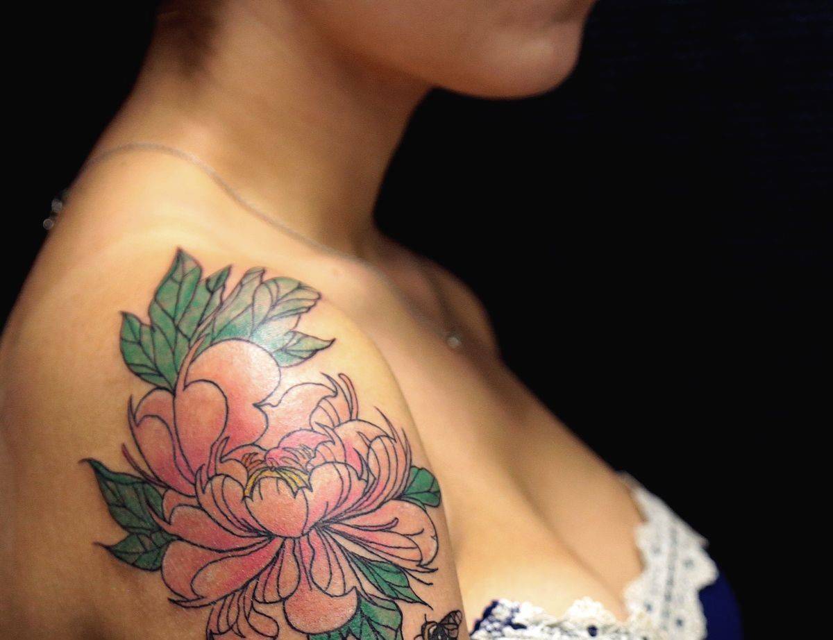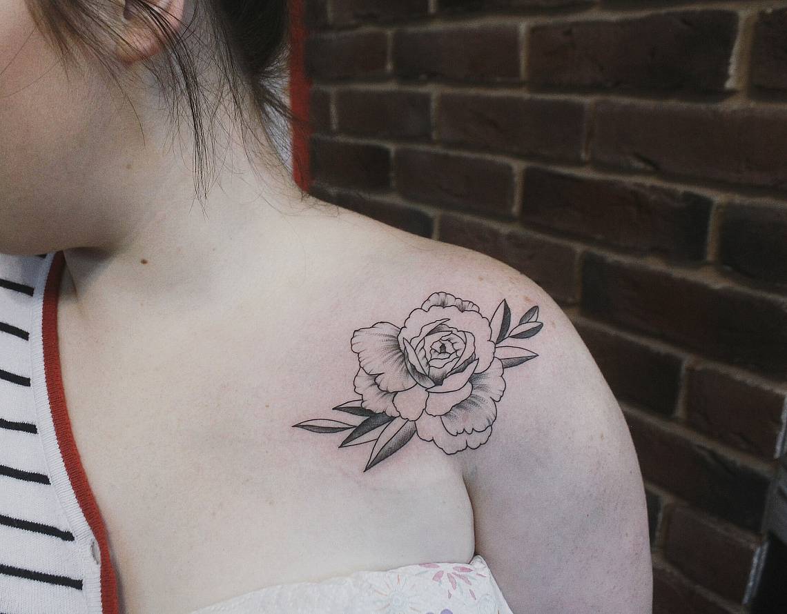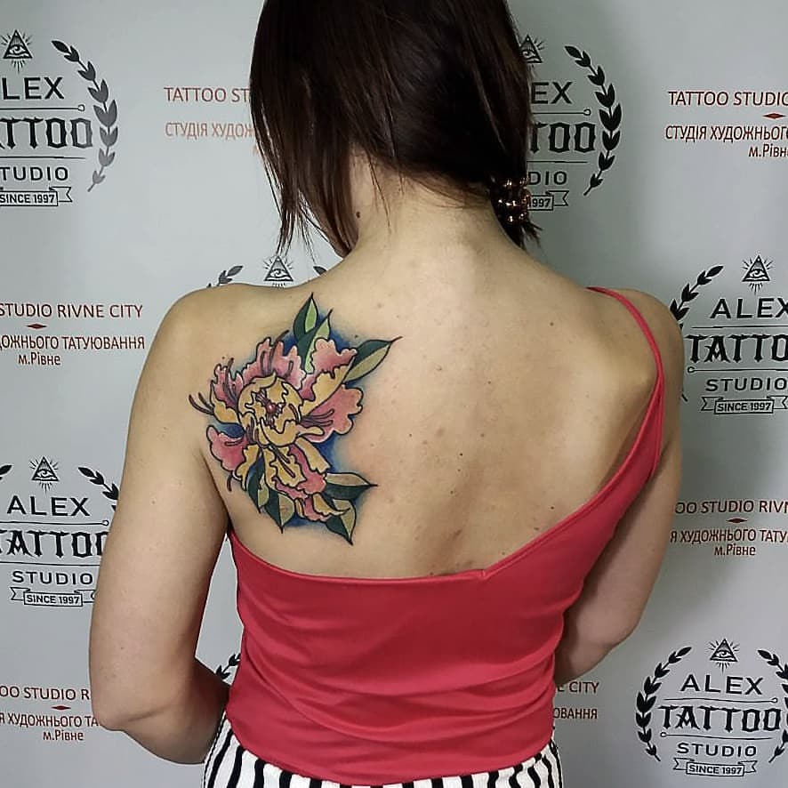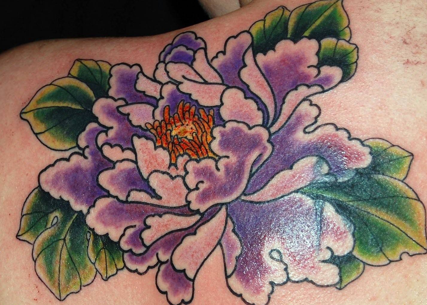 Тату пион на лопатке, ребрах или ключице: