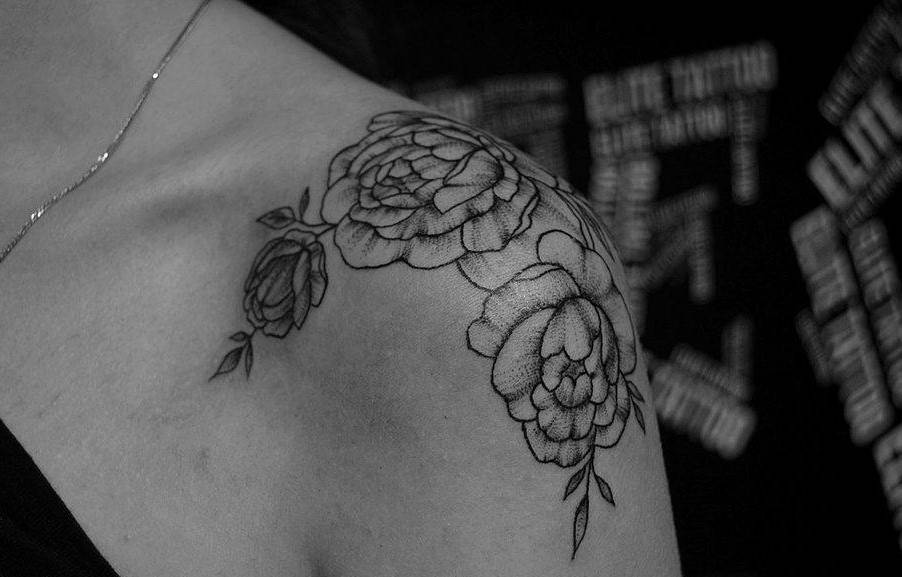 Тату цветы на плече