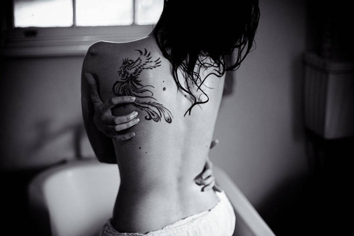 Феникс, расположенный на спине поможет преодолеть жизненные трудности, наделит женщину силой воли. Существует мнение, что если крылья птицы простираются до области шеи, она поможет владелице тату предвидеть в жизни опасности.